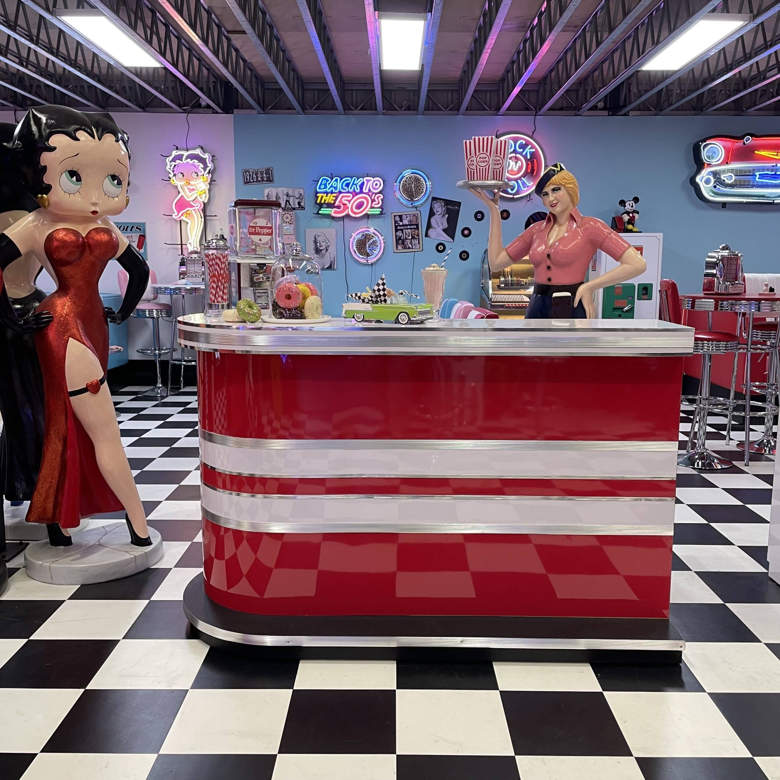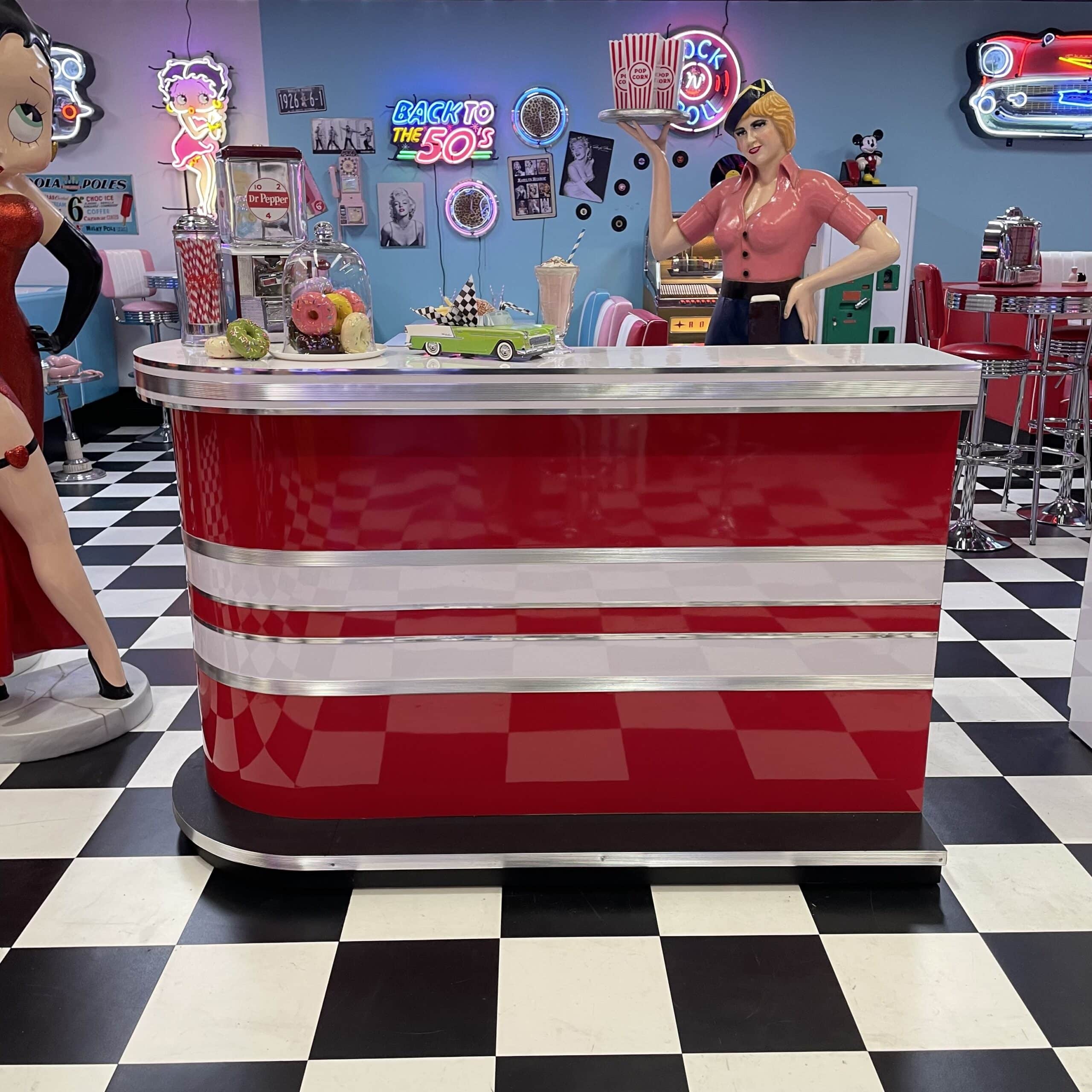 American Retro Red and White Diner Bar – Left Curve